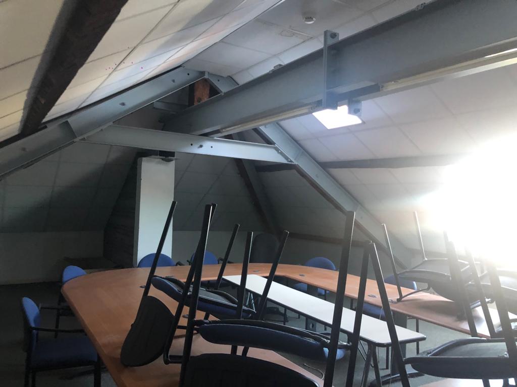 Chaque étage comprend les bureaux avec sanitaires, une cuisine en RDC et un grenier aménagé en salle de réunion.